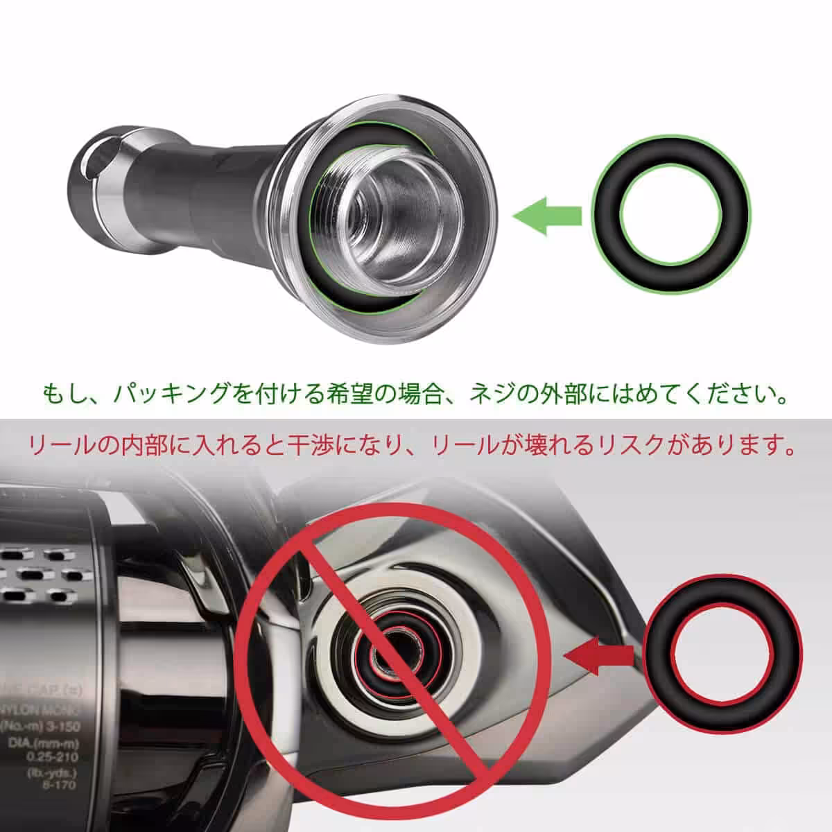 21 スフェロスSW 6000HGに装着.中間部のブッシュの加工精度も素晴らしく,指で回して折り畳むのもスムーズです.伸ばした状態では全くグラグラしません.Oリングが3個も附属されていて,予備になり有難いです.この価格にしてコスパは素晴らしい. ※ 注文から2日(中1日)で届きました.
